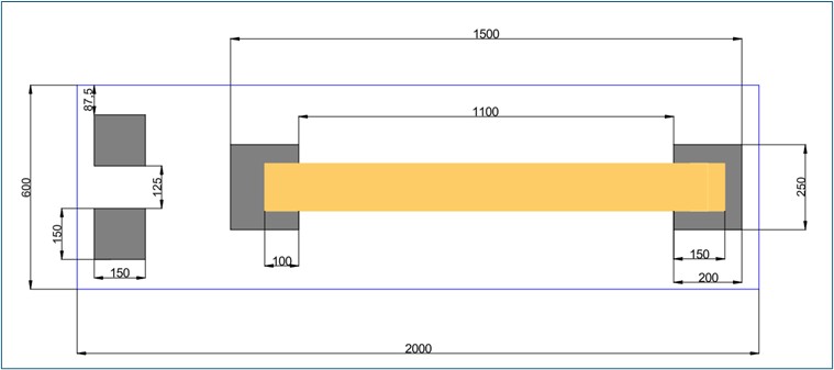 Les blocs de siporex de dimensions 200x250x350ht et 200x250x250ht serviront de culées au pont. Elles seront toutes deux espacées de 1000 mm avec aucun élément porteur entre elles.