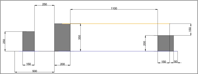 - Une surface de 100*1100 mm et une hauteur de 200 mm pour tous les ponts sur le tablier, doit rester libre afin de pouvoir réaliser le chargement. Si la zone n’est pas respectée la note sera divisées par 2.